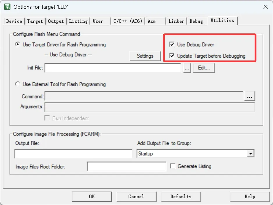 · 在项目设置的Utilities界面勾选Use Debug Driver选项