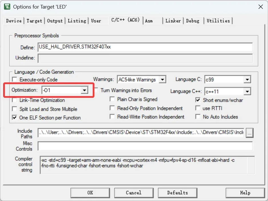· 在项目中配置好开发环境(如仿真器配置、优化程度选择)