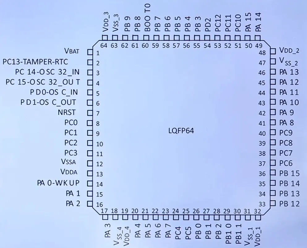 GPIO引脚按组区分,如F103xx系列的引脚有GPIOA~GPIOC每组各16个引脚,外加GPIOD的PD0~PD2三个引脚,共有16*3+3=51个GPIO引脚。