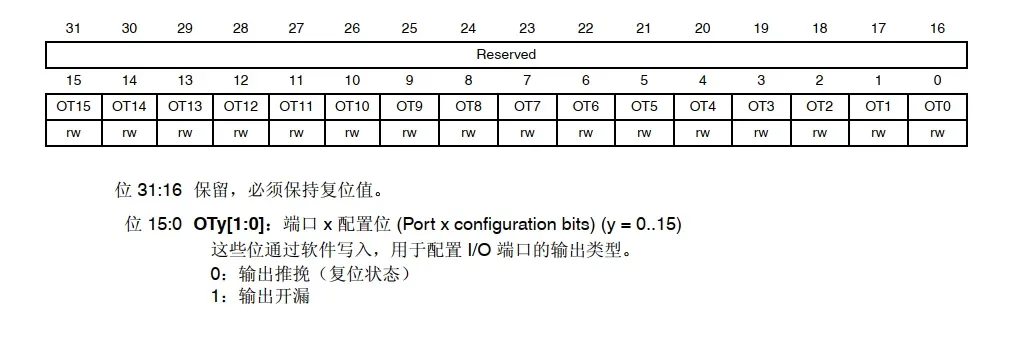 1.2 GPIO 端口输出类型寄存器 (GPIOx_OTYPER) (x = A..I)