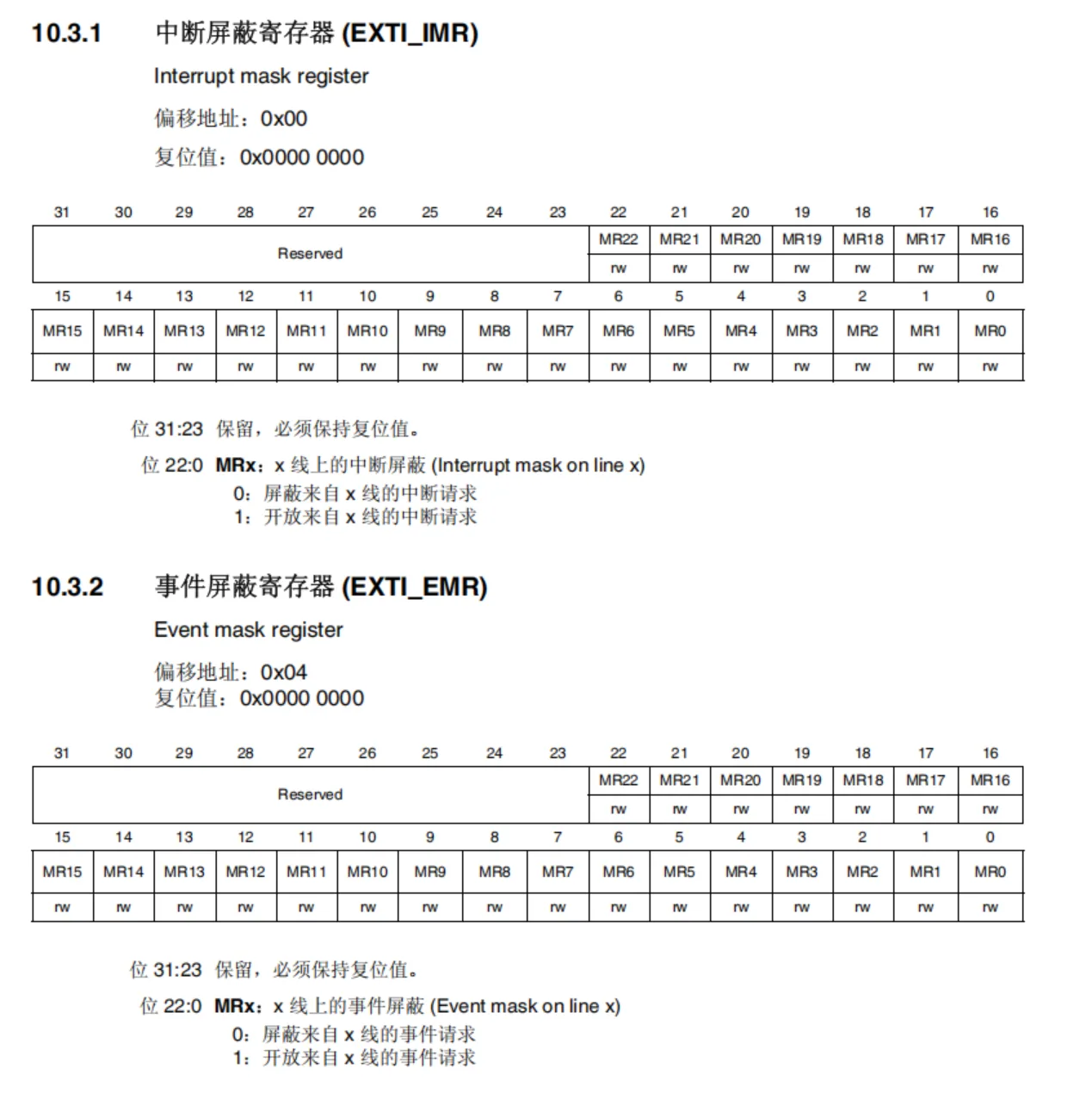 位的使用与R/FTSR同理,但置0才表示启用屏蔽。