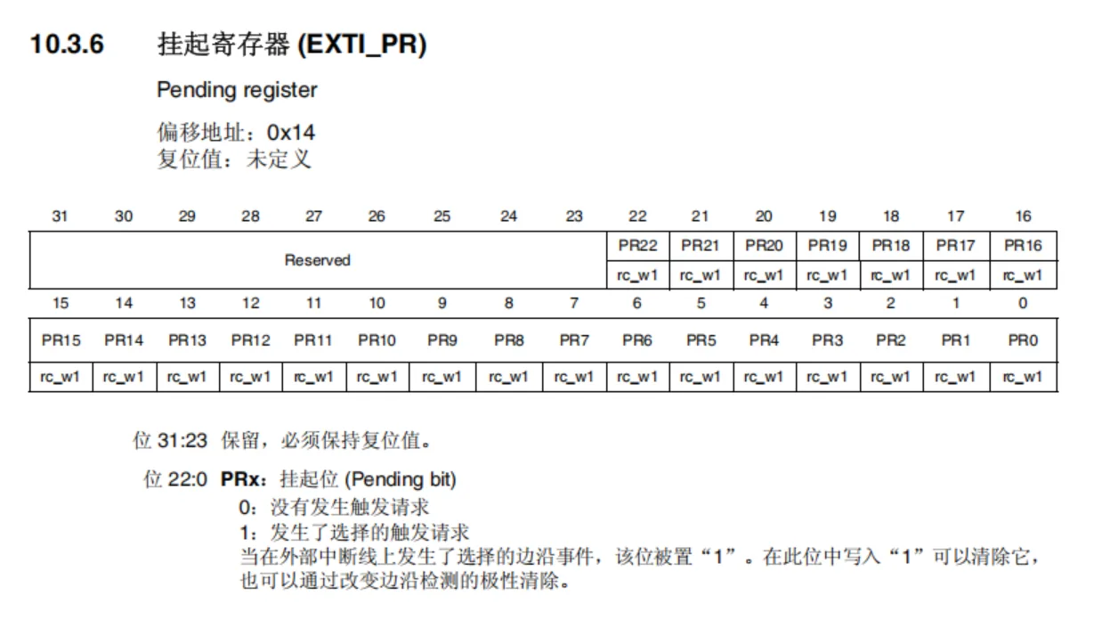 当有信号1输入时,PR硬件置1,再写入1可以清除,也可改变边沿检测极性(对当前检测方式取反)来清除。