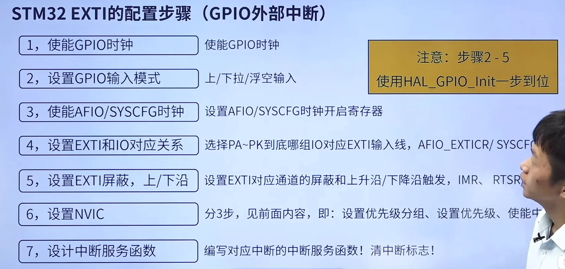 我们是从后往前讲的也就是线讲的NVIC再到EXTI,现在我们在正式配置中断时就要从前往后: