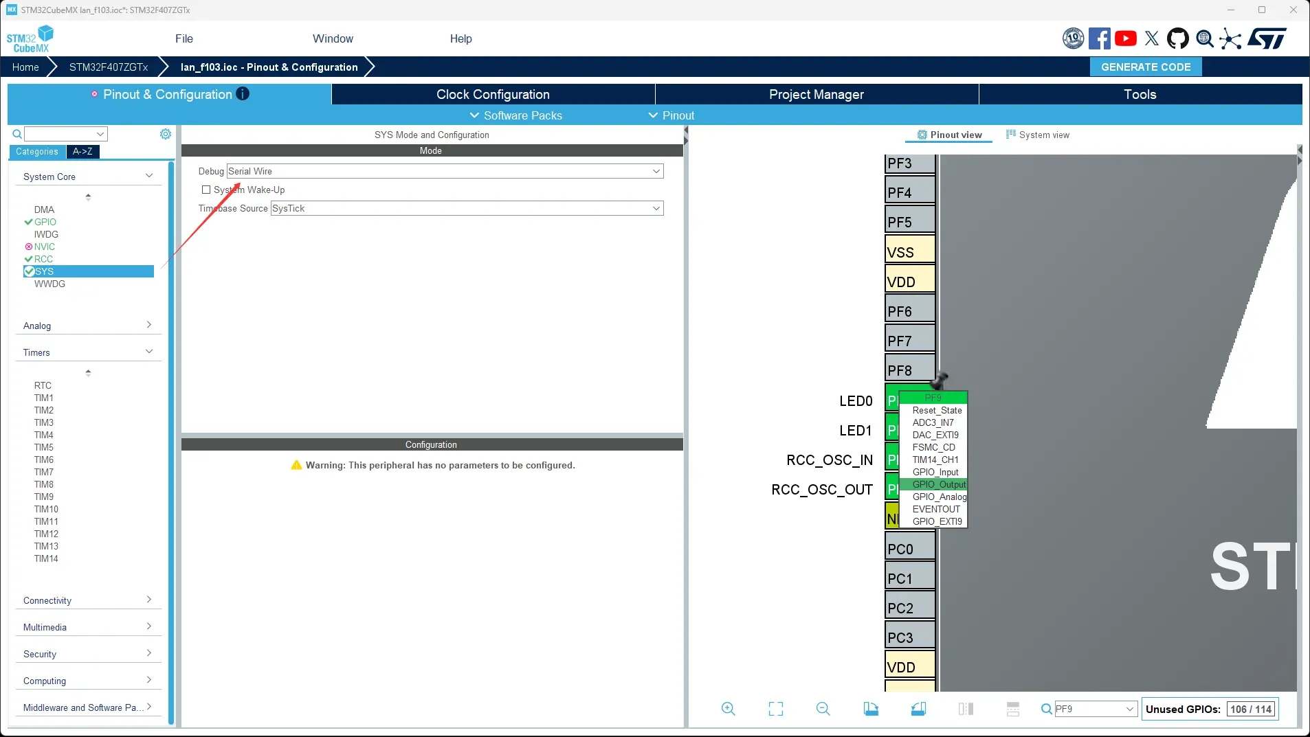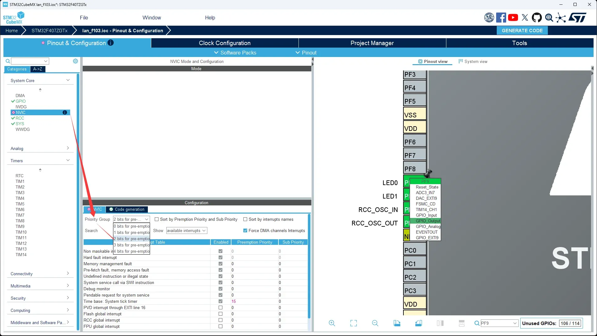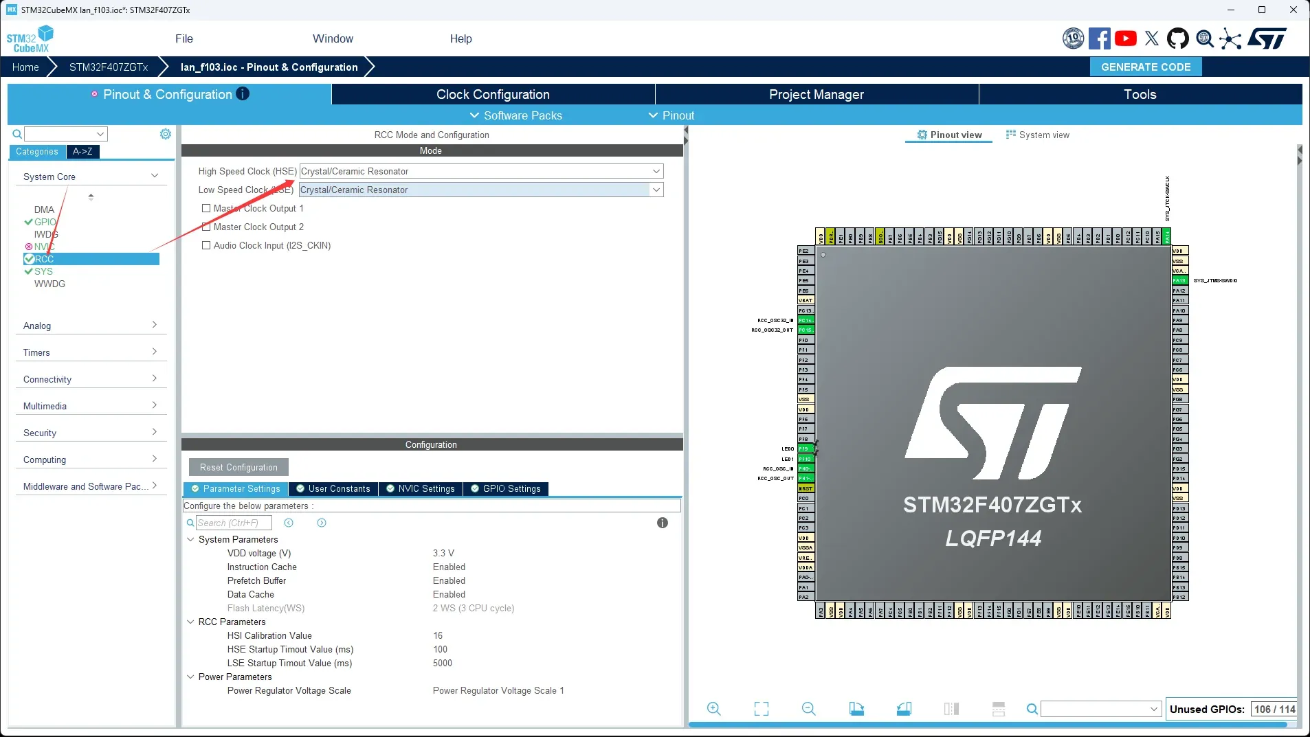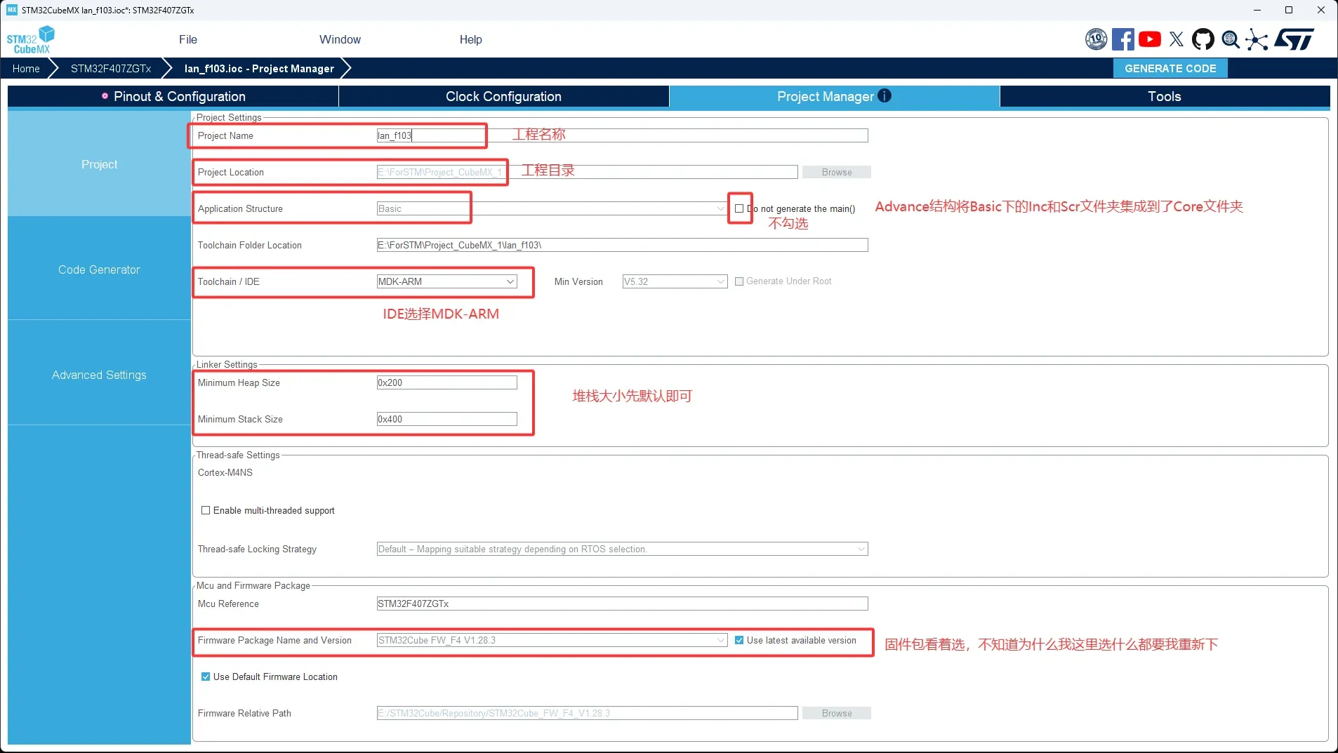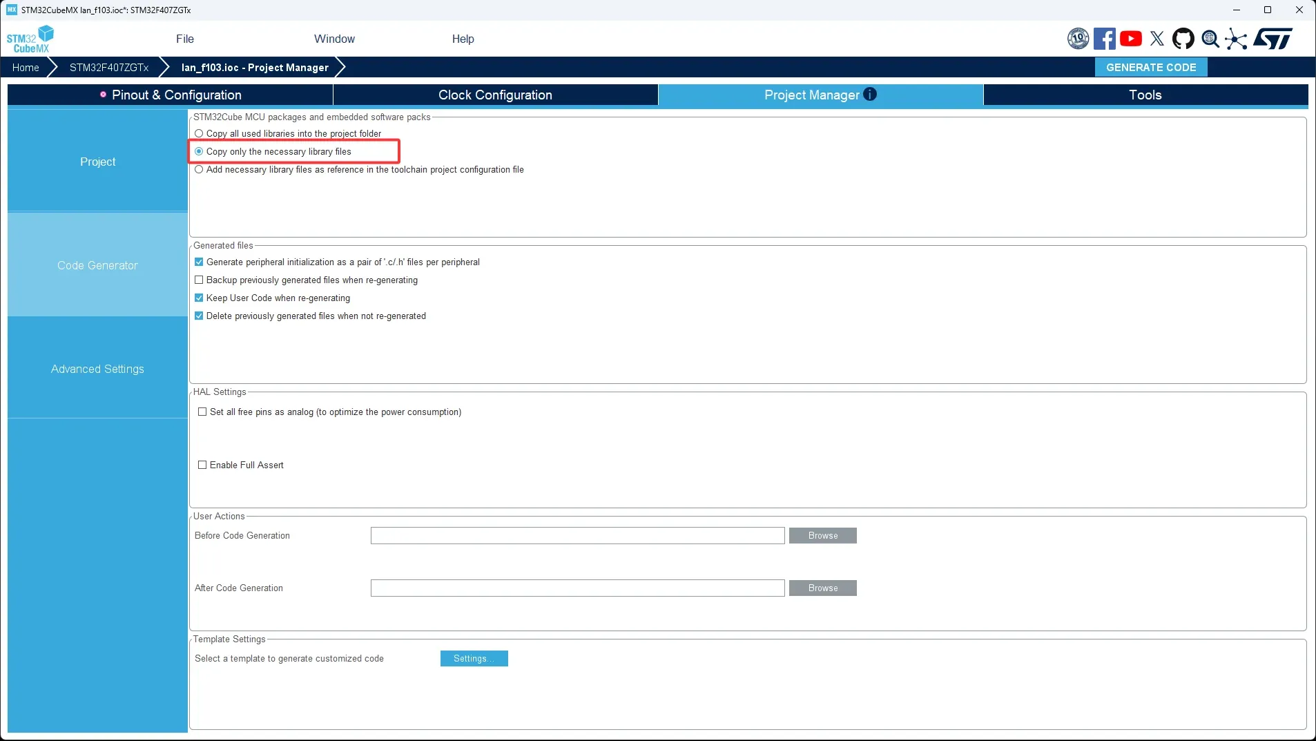 最后点击右上角GENERATE CODE开始生成初始化代码。