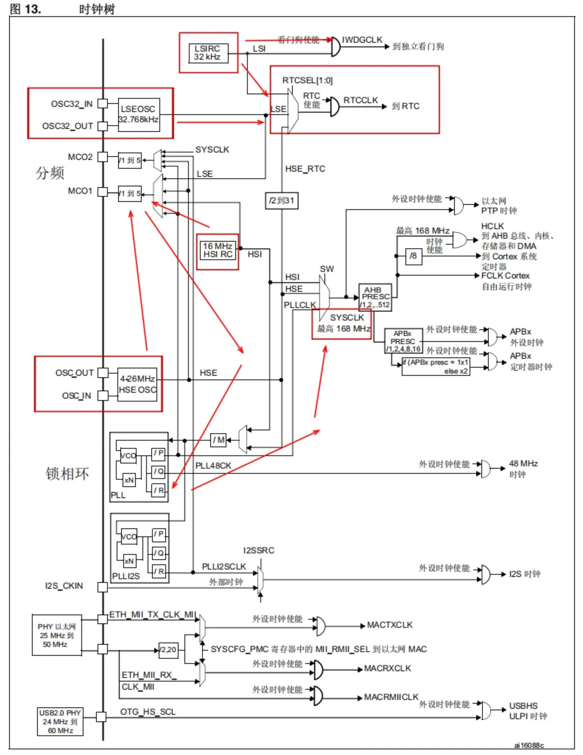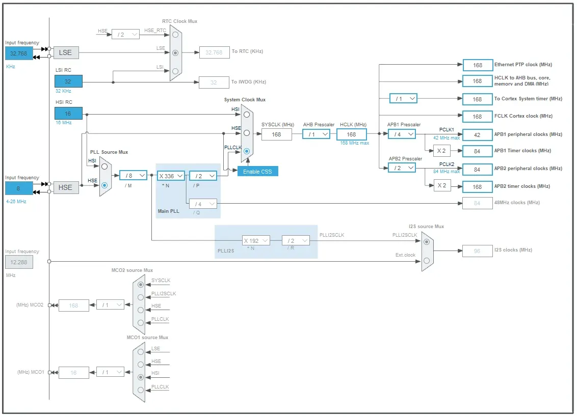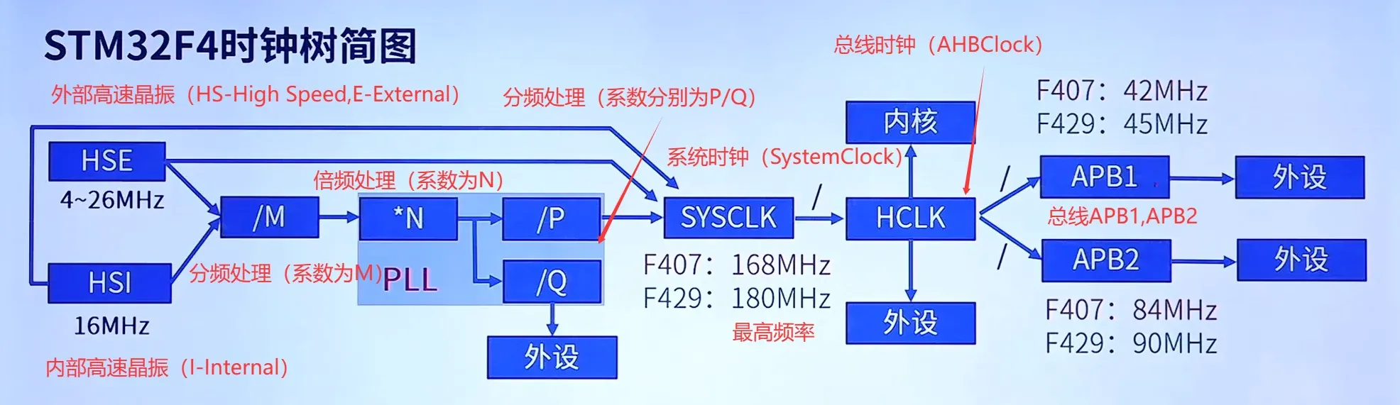 我们先简单介绍一下时钟树(基于STM32F407),先看简图(高速部分):