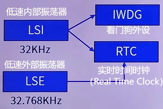 这里主要看RTC,RTC用于为系统提供精确的时间,因此在有外部振荡器的情况下优先选择外部振荡器(频率更稳定),若实在没有外部振荡器也可以使用内部振荡器替代。